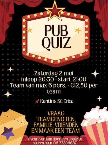 Na het grote succes van vorig jaar organiseert dit jaar onze activiteitencommissie opnieuw een pubquiz!